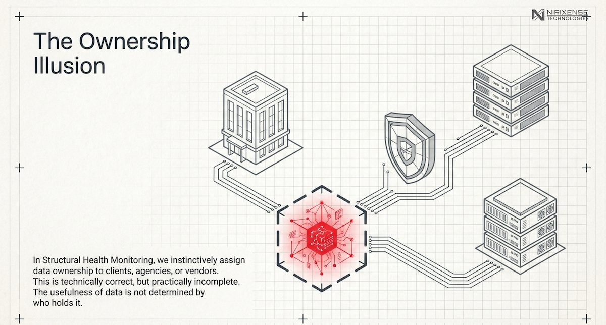 In our discussion with Prof. Dutta, the question of data ownership in structural health monitoring (SHM) systems did not come up directly. It emerged gradually, through a more grounded concern: what actually happens after a monitoring system is deployed.
