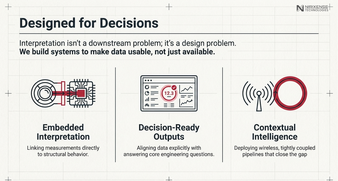 The systems are being built with a clear objective: to make data usable, not just available. This means integrating interpretation into the monitoring pipeline itself, linking measurements to structural behavior, aligning outputs with engineering questions, and ensuring that insights are directly usable in decision-making contexts.